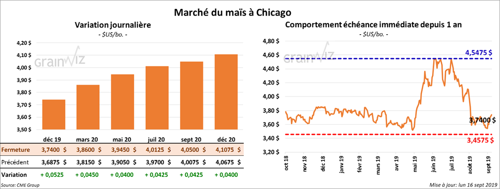 La majorité des contrats de maïs à Chicago ont terminé la journée avec des gains de 4 à 5 ¼ cents. Aidés par la hausse du pétrole brut et par celle des contrats d’essence US (20 cents le gallon), les contrats d’éthanol US ont bondi de 1,11 %.