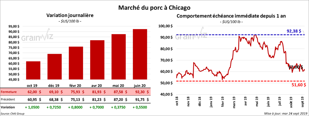 Les contrats de porc à Chicago ont terminé la journée avec des gains de 38,5 cents à 1,05 $.