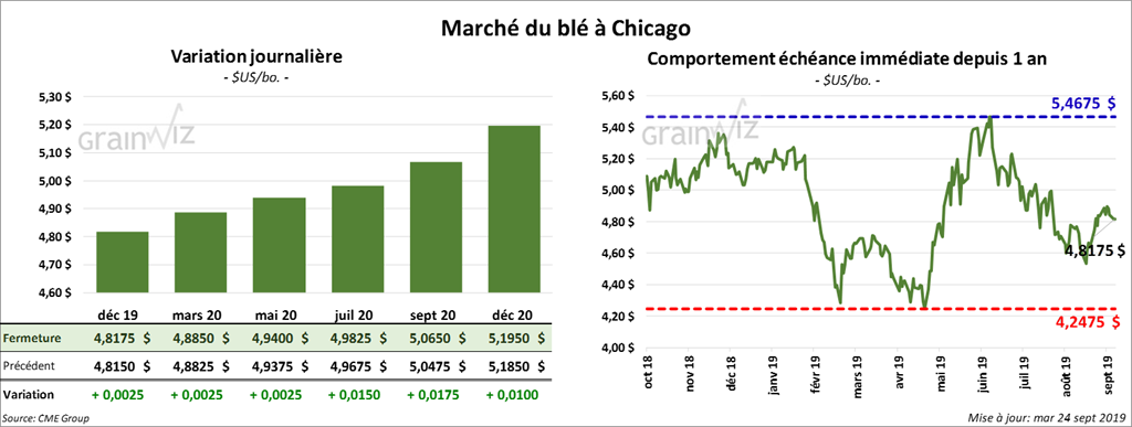 Les contrats de blé d’hiver ont terminé au neutre à baissier de 3 cents. Par contre, à Minneapolis, ils ont progressé de 4 à 8 cents.