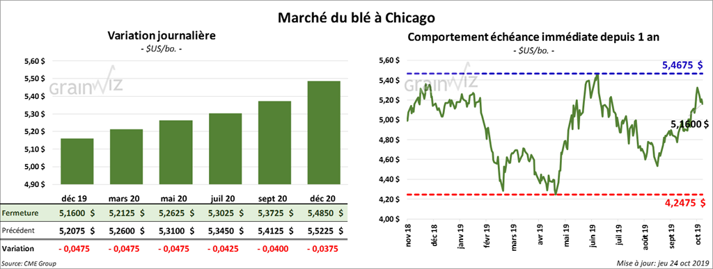 Les contrats de blé US ont terminé la session en baisse.