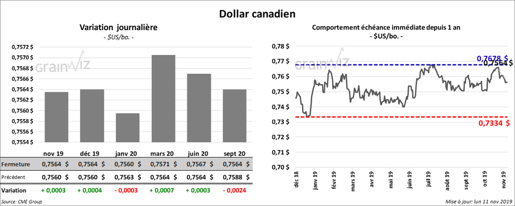 Le rapport mensuel du NASS sur la progression des cultures a indiqué vendredi une projection de rendement pour le soya US 2019 à 46,9 bo./acre. À noter que les producteurs US sont demeurés optimistes malgré les chutes de neige qui ont eu lieu en octobre dernier. Le USDA a laissé la production de soya US à 3,550 milliards de boisseaux. Les inventaires de fin d’année de soya US ont été prévus à 475 milliards de boisseaux. Mondialement, les stocks de soya ont été estimés à 95,42 millions de boisseaux.