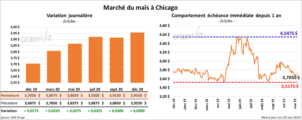 Les contrats de maïs US ont terminé la journée avec des gains de 1 ¾ à 3 ¼ cents.