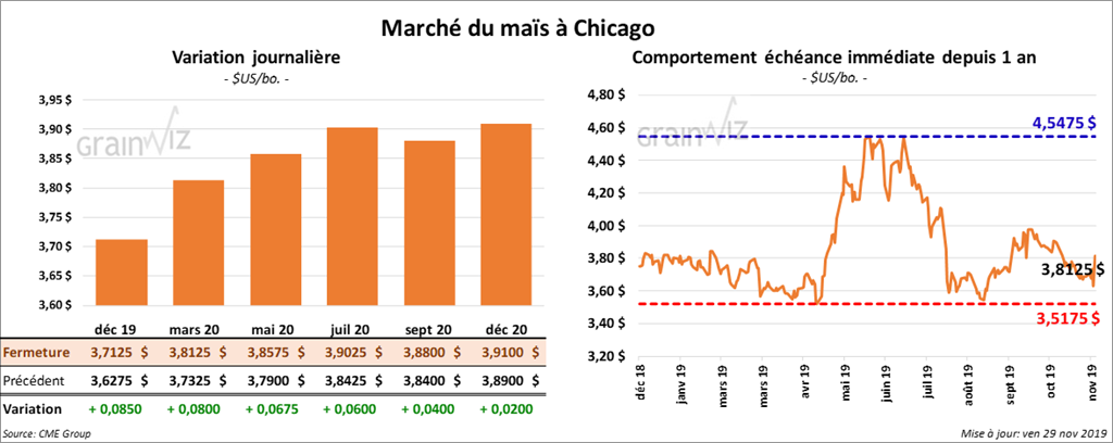 Les contrats de maïs à Chicago ont terminé la journée en hausse de 6 à 8 ½ cents. Pour la semaine, ils ont progressé de 2 ½ cents.