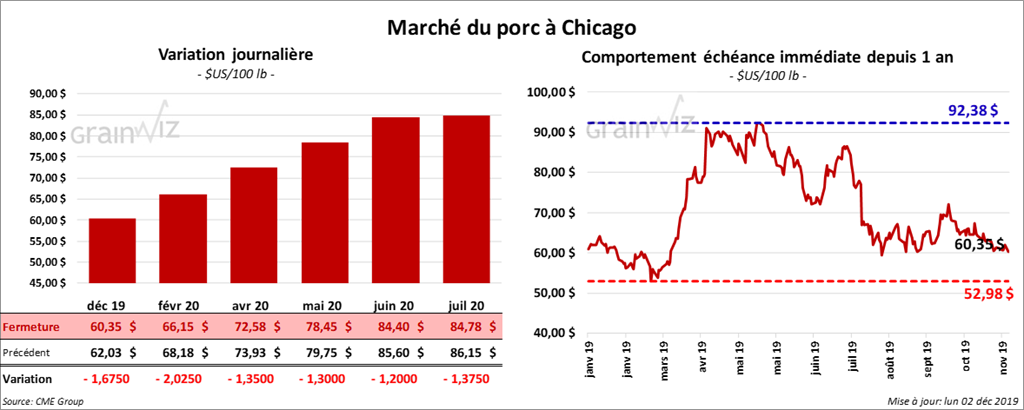 Les contrats de porc US ont terminé en baisse de 2,25 $