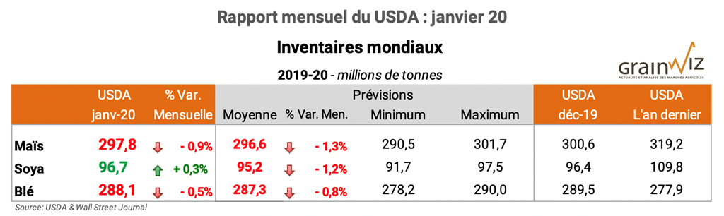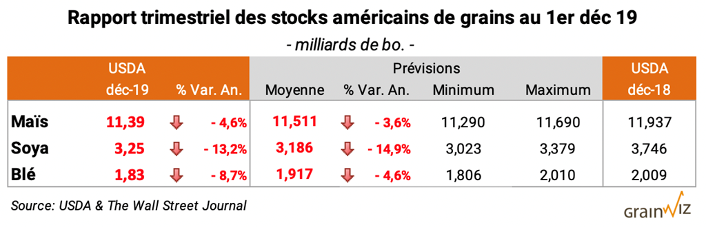 - Inventaires trimestriels de grains américains au 1er décembre dernier (Grain Stocks)