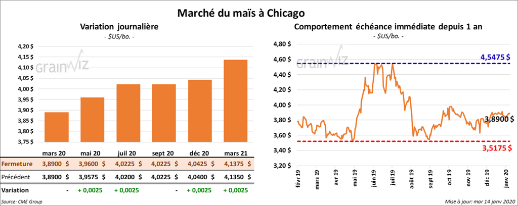 Le rapport de l’EIA sur l’éthanol US sera présenté demain. À noter que le marché s’attend à ce que les achats d’éthanol, mais, de drèche et de sorgo US par la Chine soient inclus dans l’accord Phase 1 qui sera signé demain matin.