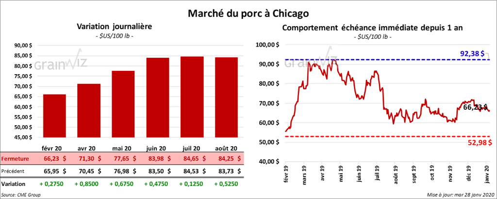 Le 24 janvier dernier, le CME Lean Hog Index était en progression de 37 cents à 61,90 $.