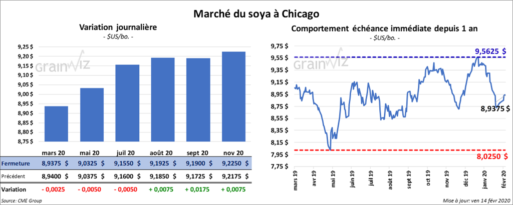 Les contrats de soya US aux échéances les plus rapprochées ont fini la session en baisse de 2 ½ à 2 ¾ cents. À la fermeture du marché, le tourteau de soya US avait reculé de 80 cents/tonne et l’huile de 15 points.