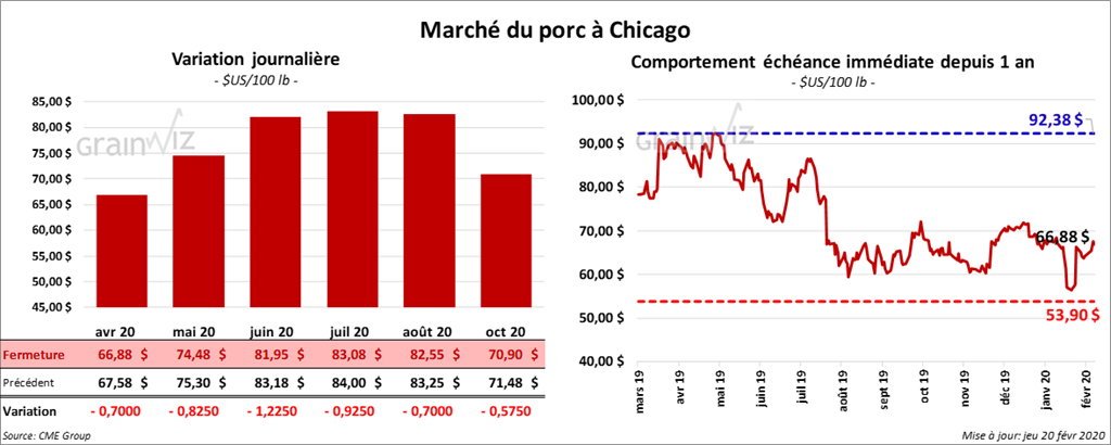 Les contrats de porc US aux échéances les plus rapprochées ont terminé la session avec des pertes de 70 cents à 1,22 $.