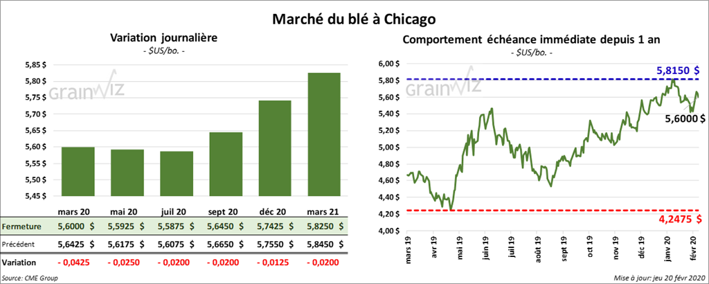 Pour le rapport sur les ventes à l’exportation de la semaine du 13 février dernier, les marchés anticipent celles de blé US de l’ancienne récolte entre 400,000 et 650,000 tonnes. Dans le cas de la nouvelle, les prévisions sont entre 0 et 50,000 tonnes.