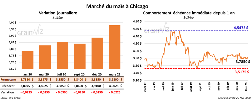 La publication du rapport sur les ventes à l’exportation de la semaine du 13 février 20 a été remise à demain en raison du congé de lundi dernier (President’s Day). Dans le cas du maïs US, le marché anticipe des ventes entre 0,7 et 1,1 million de tonnes pour l’ancienne récolte et de plus de 100,000 tonnes pour la nouvelle.