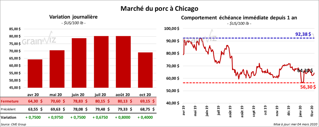 Le 2 mars dernier, le CME Lean Hog Index était en baisse de 3 cents à 56,22 $.