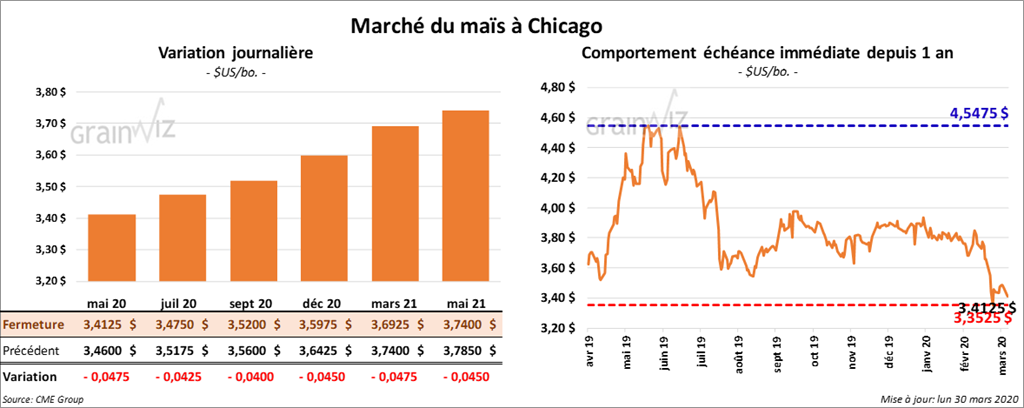 En cette première journée de la semaine, les contrats de maïs US aux échéances les plus rapprochées ont terminé en baisse de 4 à 4 ¾ cents.