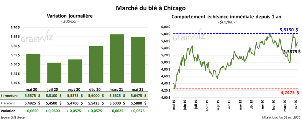 Les contrats de blé tendre rouge d’hiver US ont terminé la session avec des gains de 5 ¾ à 6 ½ cents. À Kansas, le blé dur rouge d’hiver a clôturé en hausse de 3 ¼ à 3 ¾ cents. À Minneapolis, les contrats de blé ont fini la journée dans le vert de 2 ¼ à 2 ½ cents.