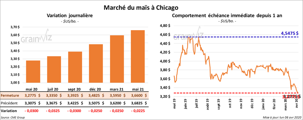 Les contrats de maïs US aux échéances les plus rapprochées ont terminé la séance en baisse de 2 ½ à 3 ¼ cents.