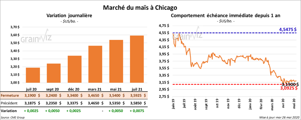 Les contrats de maïs US ont terminé la journée en hausse de 1 à 1 ¾ cent.