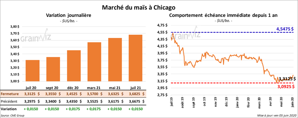 Sur la semaine, les contrats de maïs US ont progressé de 2,1 %. Aujourd’hui, les contrats aux échéances les plus rapprochées ont terminé la session en hausse de 2 à 2 ¼ cents.
