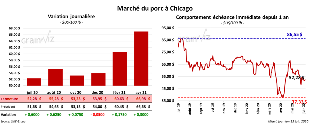 Les contrats de porc US ont fini la journée en hausse de 7 à 72 cents.