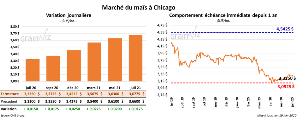 Les contrats de maïs US ont clôturé en hausse de 1 ½ à 2 ¾ cents.