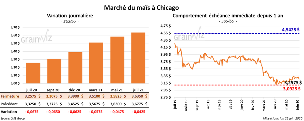 Les contrats de maïs ont terminé la journée en baisse de 2 ¼ à 4 ¼ cents. Ceux de l’ancienne récolte ont reculé le plus.