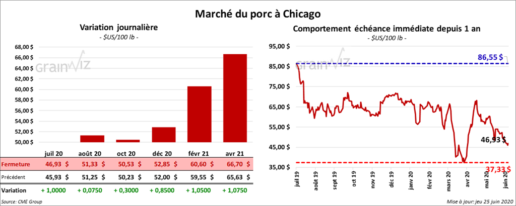 - Le 23 juin dernier, le CME Lean Hog Index était en baisse de 7 cents à 45,10 $.