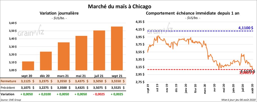 Les contrats de maïs US ont fini la session avec une certaine fermeté. Ceux septembre 20 et décembre 20 ont clôturé dans le vert d’une fraction de cent. Par contre, ceux juillet 21 et septembre 21 ont terminé dans le rouge par une fraction de cent.