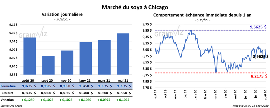 Les contrats de soya US aux échéances les plus rapprochées ont fini la journée en hausse de plus de 17 ¼ cents. Ceux de tourteau de soya US ont également clôturé dans le vert entre 7,90 $ et 8,30 $. Par contre, les contrats d’huile de soya US ont fait l’inverse en terminant en baisse de 33 à 40 points.