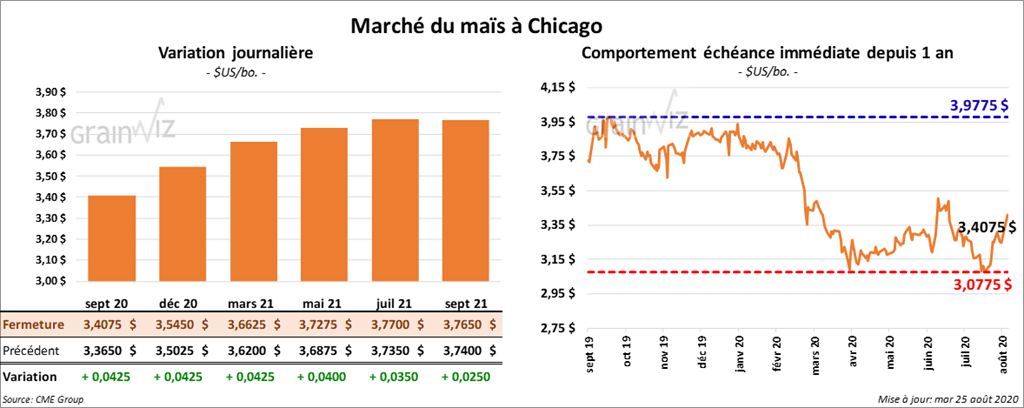 Les contrats de maïs US ont fini la séance en hausse entre 6 ¼ et 9 ½ cents