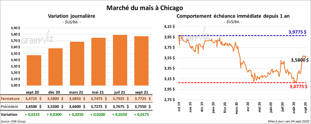 Les contrats de maïs US aux échéances les plus rapprochées ont terminé la session en hausse de 2 à 3 ½ cents.