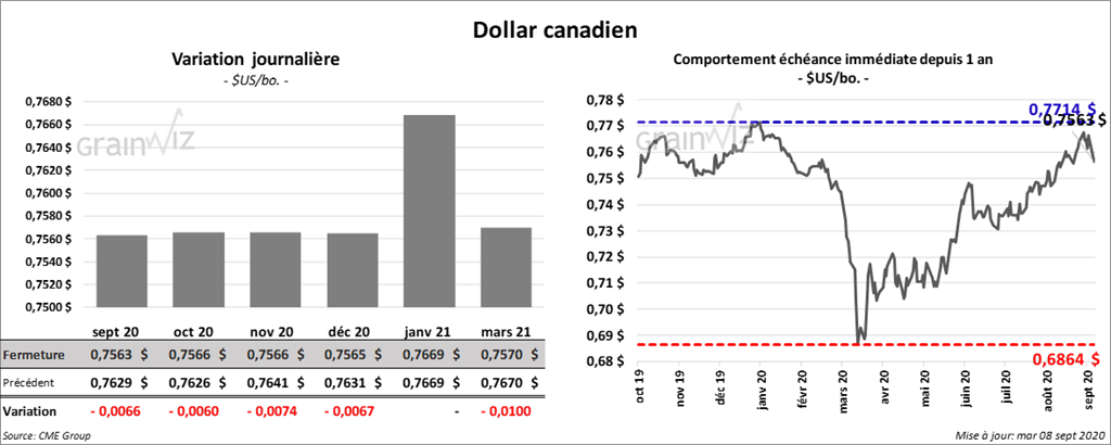 - Le 6 septembre dernier, la récolte de blé de printemps US était terminée à 83 % comparativement à 67 % la semaine précédente. À noter qu’il y avait un retard de 5 % par rapport à la moyenne quinquennale. Les ensemencements de blé d’hiver US ont été finalisés à 5 % alors que la moyenne des 5 dernières années est de 3 %.