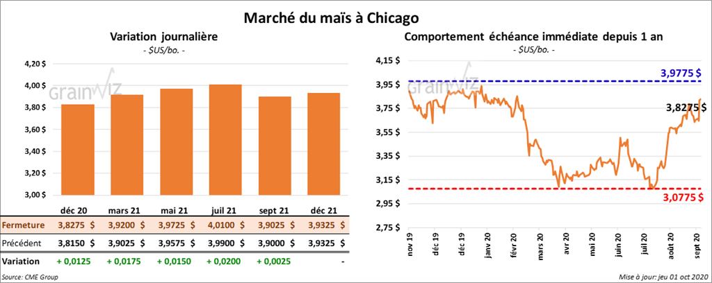 Les contrats de maïs US ont terminé la journée en hausse de 2 à 3 ¾ cents.