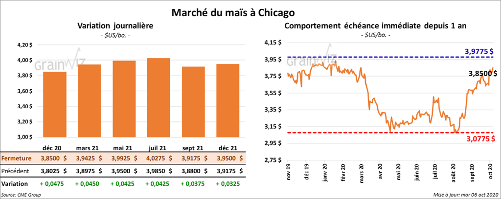 Les contrats de maïs US ont fini la session en hausse de 3 à 5 ½ cents.