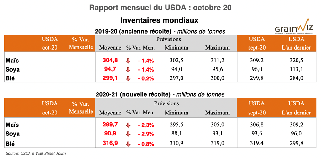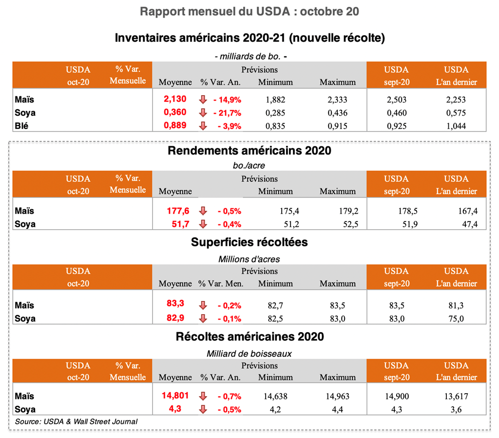 Pour accéder aux résultats complets de ce rapport lors de sa publication: WASDE Oct. 20