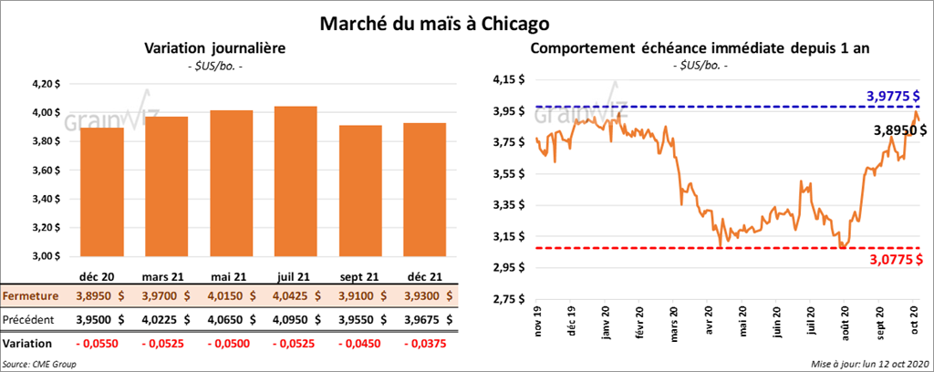 - La parution du rapport sur les inspections à l’exportation de la semaine du 8 octobre dernier et celle du rapport sur la progression des cultures en date du 11 octobre dernier ont été remises à demain en raison du congé du Colombus Day.