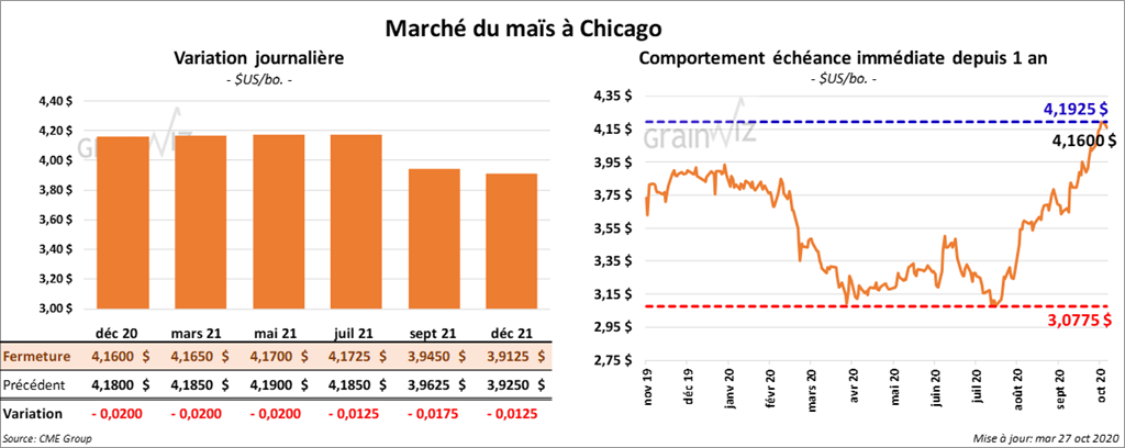 Les contrats de maïs US ont terminé la session avec des pertes de 1 à 2 ¼ cents.