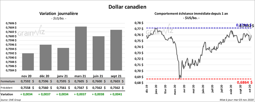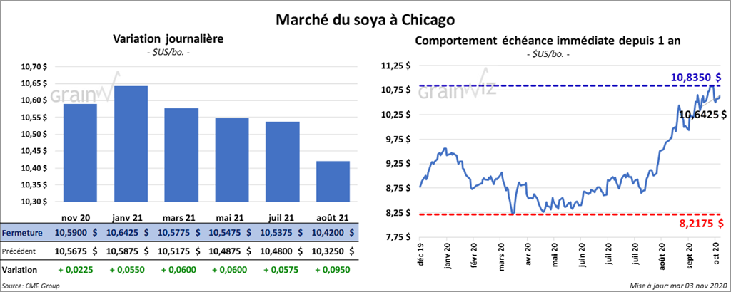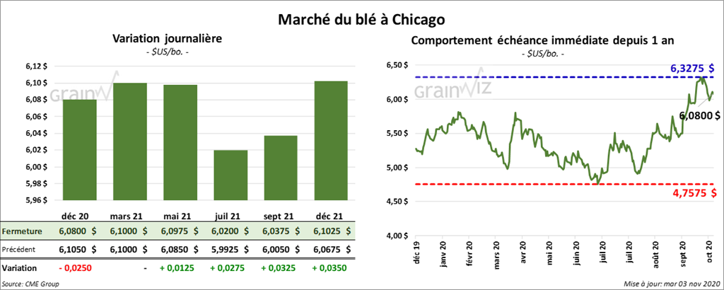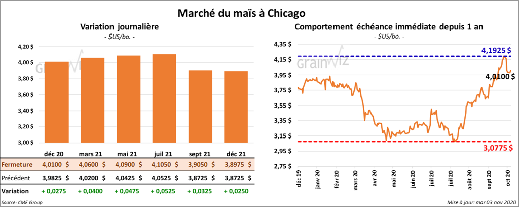 En ce jour des élections US, les contrats de maïs US ont terminé la session en hausse de 3 à 4 ½ cents.