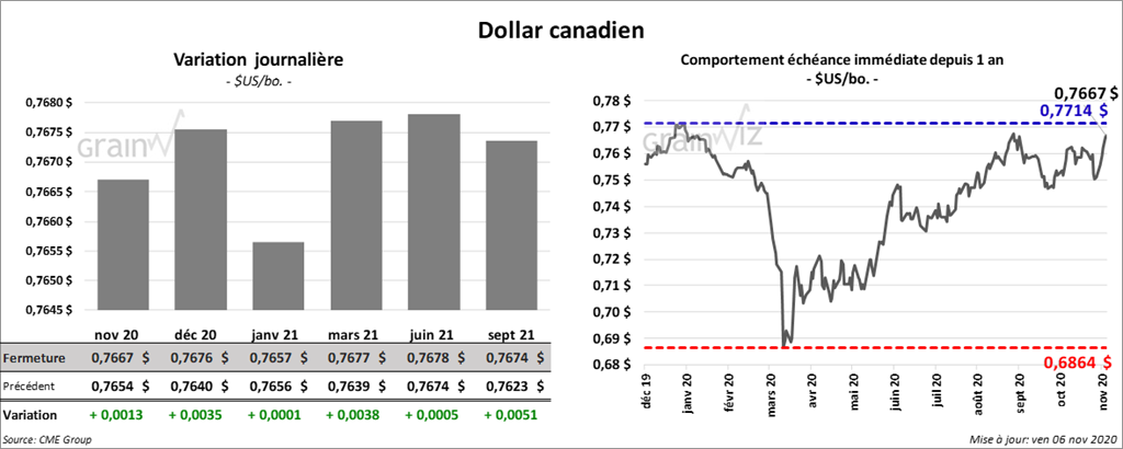 Le contrat de porc US décembre 20 a terminé la journée en baisse de 2,53 $. Celui février 21 a clôturé avec une perte de 1,45 $. Par contre, les contrats aux échéances les plus éloignées ont fermé en hausse de 22 à 85 cents.