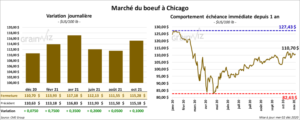 - Le 1er décembre dernier, le CME Feeder Cattle Index était en baisse de 43 cents à 139,87 $.