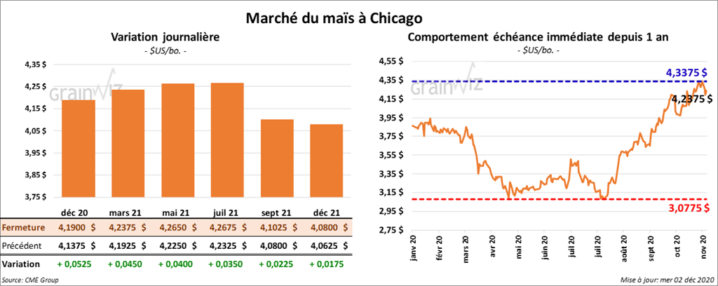 Les contrats de maïs US aux échéances les plus rapprochées ont fini la session en hausse de 2 ½ à 4 ½ cents.