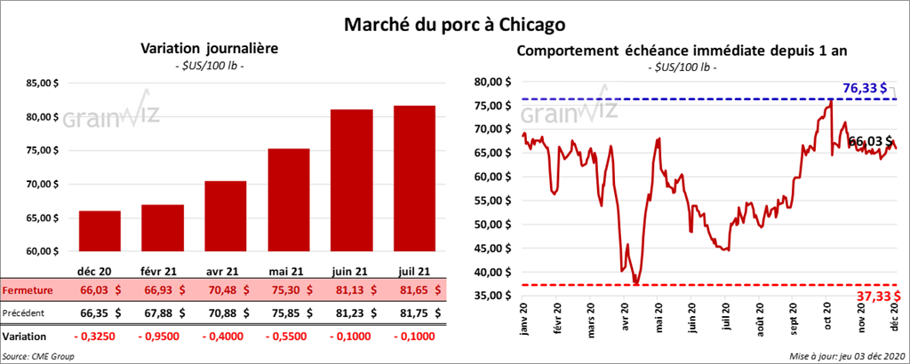 - Le 1er décembre dernier, le CME Lean Hog Index était en hausse de 4 cents à 66,71 $.