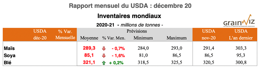Pour accéder aux résultats de ce rapport lors de sa publication: WASDE Dec 20