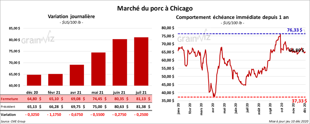 - Le 8 décembre dernier, le CME Lean Hog Index était en hausse de 6 cents à 65,66 $.