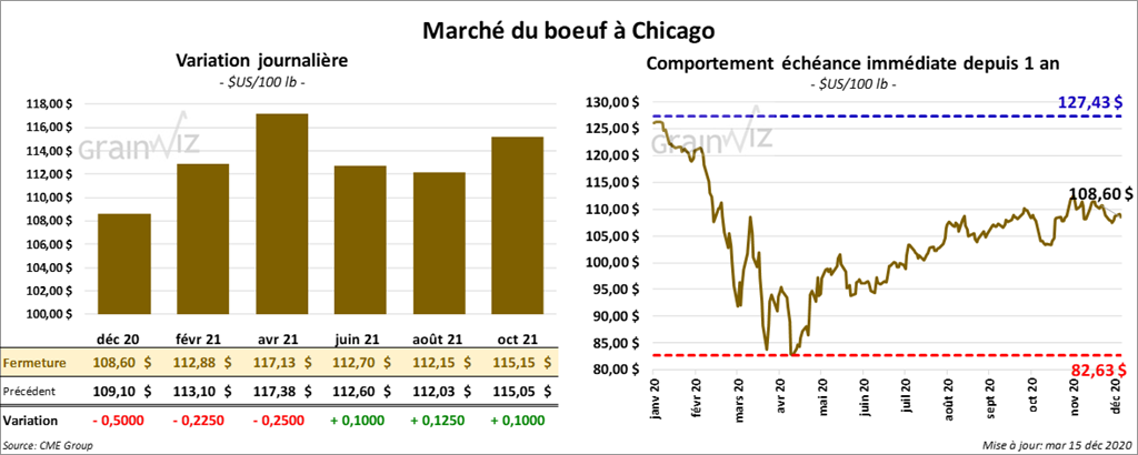 - Le 14 décembre dernier, le CME Feeder Cattle Index était en hausse de 12 cents à 136,69 $.