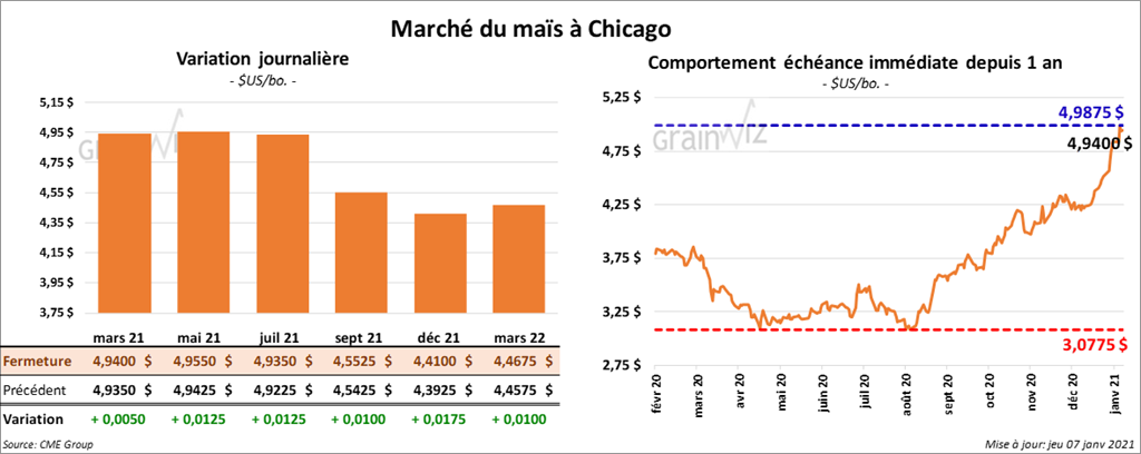 Les contrats de maïs US aux échéances les plus rapprochées ont terminé la session avec des gains entre ½ et 1 cent.