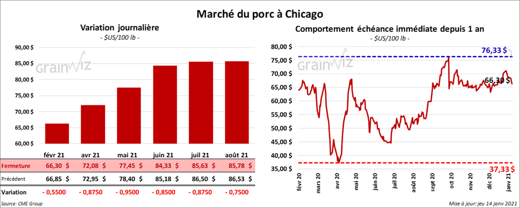 - Le 12 janvier dernier, le CME Lean Hog Index était en hausse de 99 cents à 65,48 $.