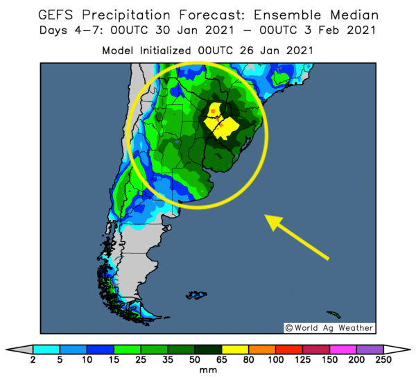 - Les récentes averses au Brésil ont ralenti les travaux aux champs. AgRural estime d’ailleurs qu’au 21 janvier dernier, la récolte a été terminée à seulement 0,7 %, ce qui était une faible progression de 0,3 % par rapport à la semaine précédente.