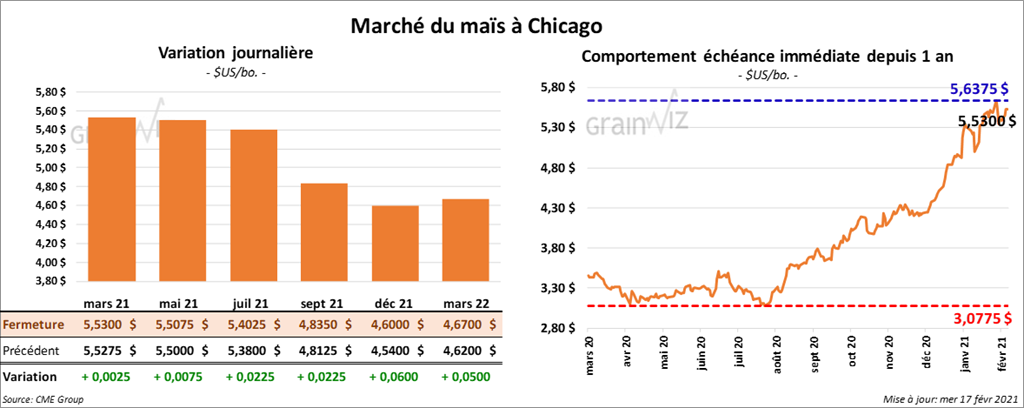 - Un sondage montre que les analystes s’attendent à ce qu’en 2021/22, les superficies allouées au maïs US attendront les 92,9 millions d’acres pour une production totale de 2021 à 15,160 milliards de boisseaux. Si ceci se vérifie, ce sera une augmentation de 6,9 % par rapport à 2020. Le forum de l’USDA sur les perspectives des cultures US se tiendra cette semaine.