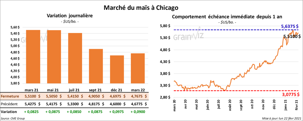 Les contrats de maïs US aux échéances les plus rapprochées ont fini la journée en hausse entre 8 ¼ et 8 ¾ cents.