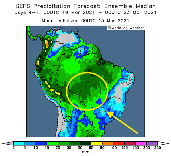 - Les autorités de la municipalité de Sorriso située dans l’État du Mato Grosso au Brésil ont déclaré l’état d’urgence. Les averses excessives ont provoqué notamment des inondations. Sorriso est la plus grande municipalité productrice de soya et de maïs du Mato Grosso, lui-même le plus gros État producteur de maïs et de soya du Brésil.