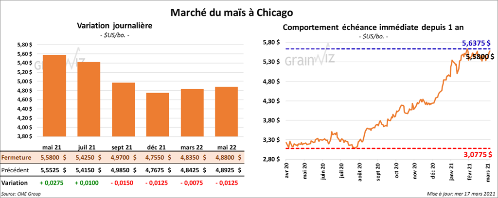 Les contrats de maïs US aux échéances les plus rapprochées ont fini la journée quelque part entre une hausse de 1 cent et une baisse de 1 ¼ cent.